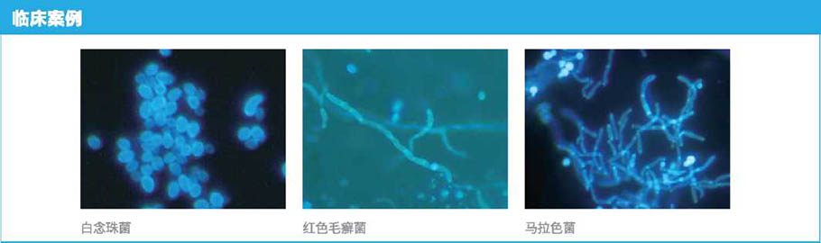 ♦ 高检出率——经荧光染色后,很容易发现真菌,可大幅降低漏检率,特别适用于某些真菌含量较少的标本